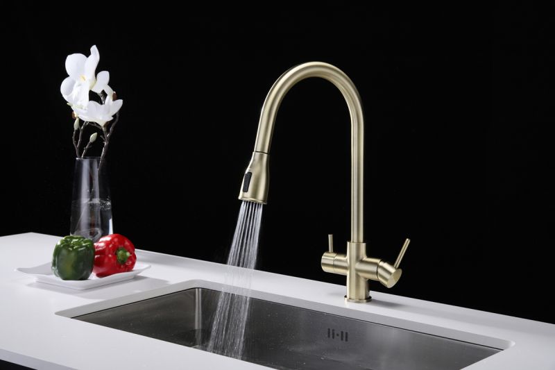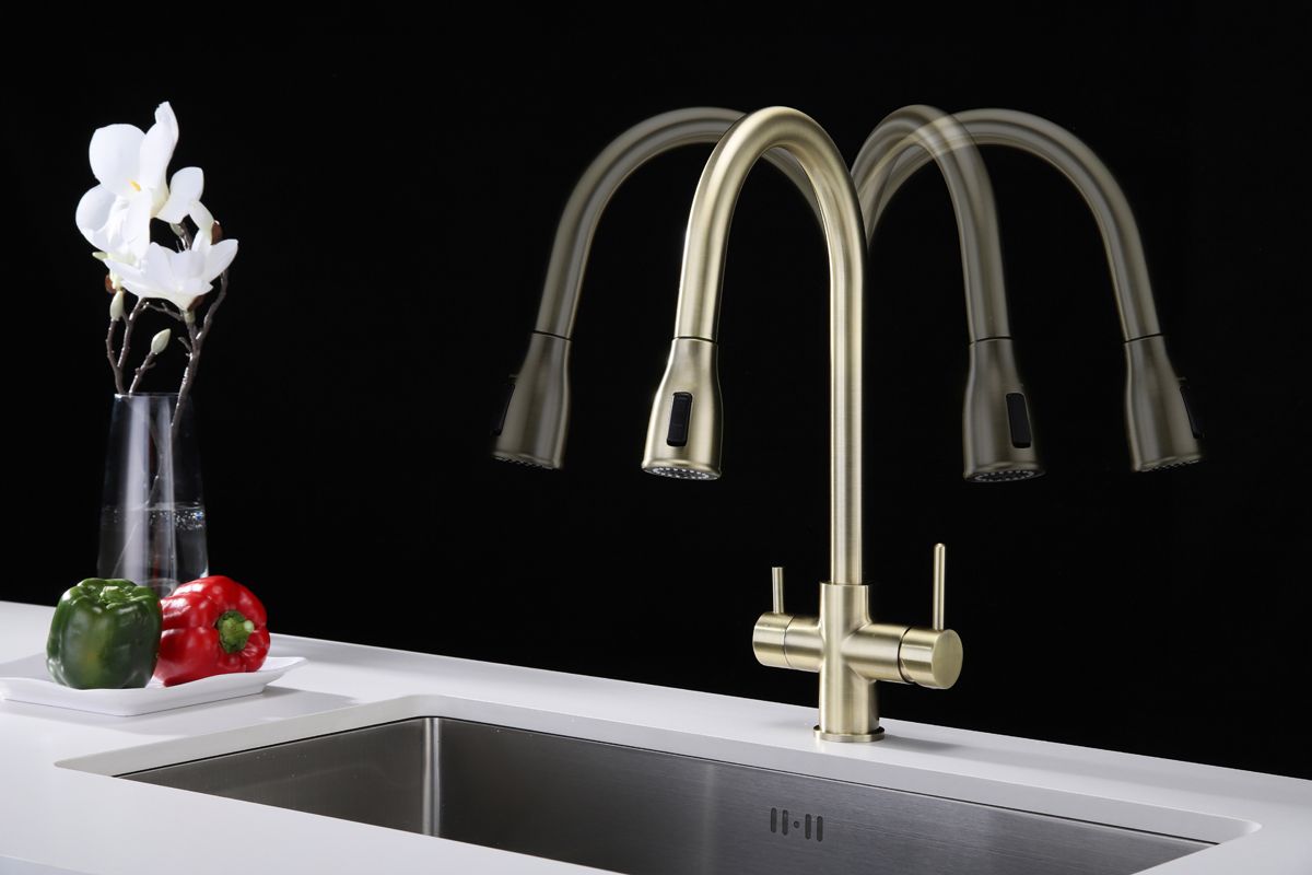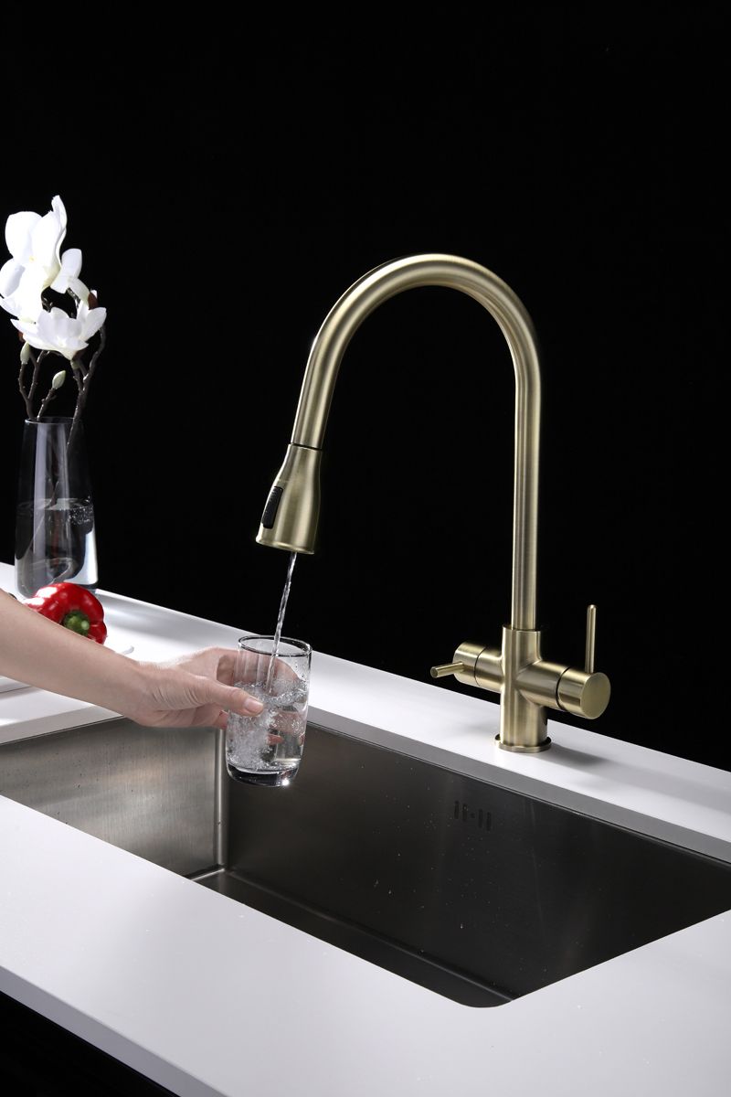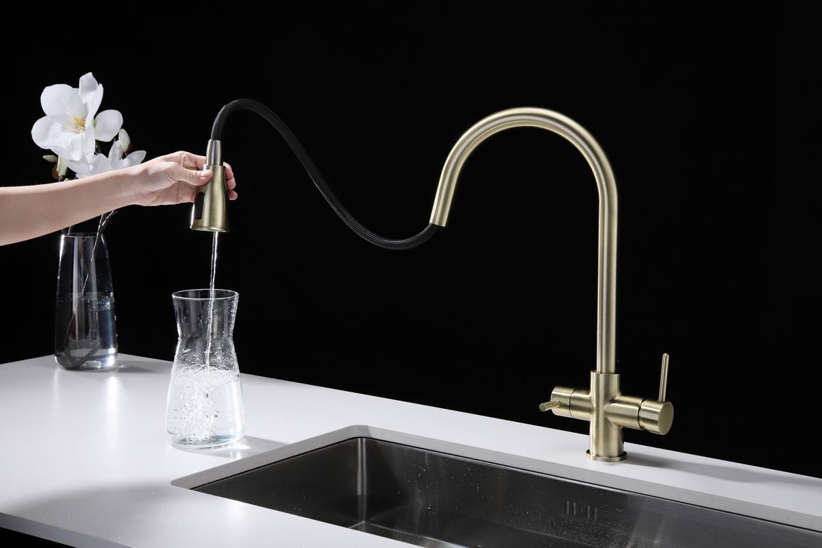 Смеситель под фильтрованную воду с выдвижным шлангом, артикул La214212-BRИзготовлен из высококачественной латуни, которая отвечает высочайшим европейским стандартам качества, не содержит свинца, не разрушается со временем и безопасна для здоровья.Вытяжной шланг