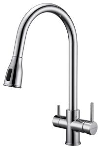 Смеситель под фильтрованную воду с выдвижным шлангом, артикул La214212-CRИзготовлен из высококачественной латуни, которая отвечает высочайшим европейским стандартам качества, не содержит свинца, не разрушается со временем и безопасна для здоровья.Вытяжной шланг
