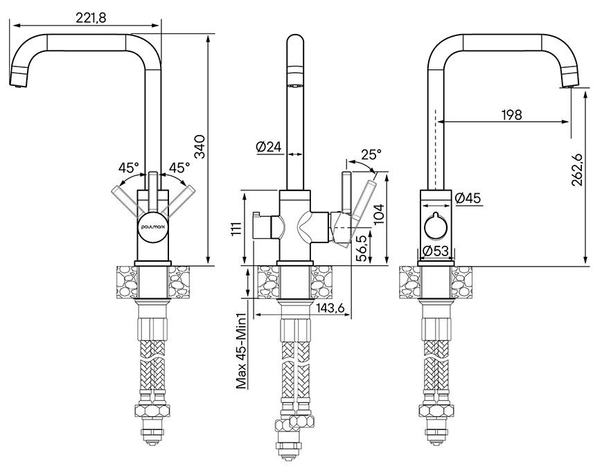 • Высота смесителя: