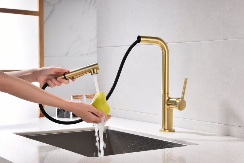 Высокий Г-образный излив с функцией вращения на 360 градусов обеспечивает удобство использования. Выдвижная часть излива способна обеспечить максимально комфортную эксплуатацию и экономный расход воды.