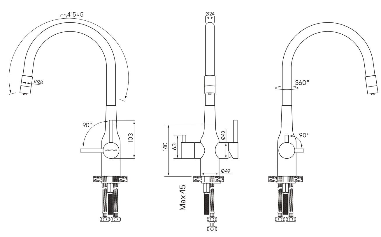Гибкий излив с фиксацией