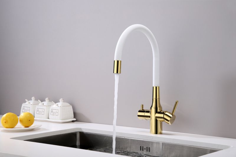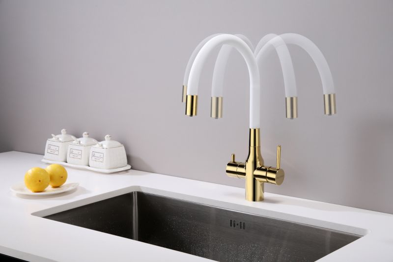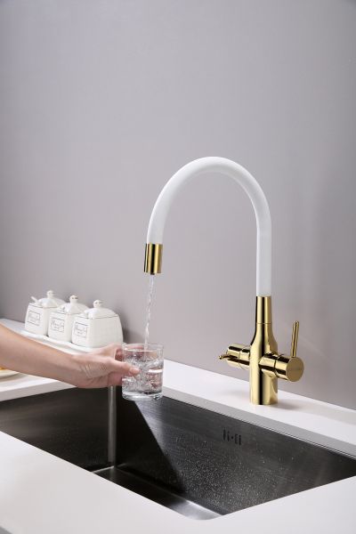 Смеситель под фильтр с гибким изливом, артикул Sa213419-GwСмеситель для кухни с возможностью подключения фильтра питьевой воды, эластичный излив с фиксацией.