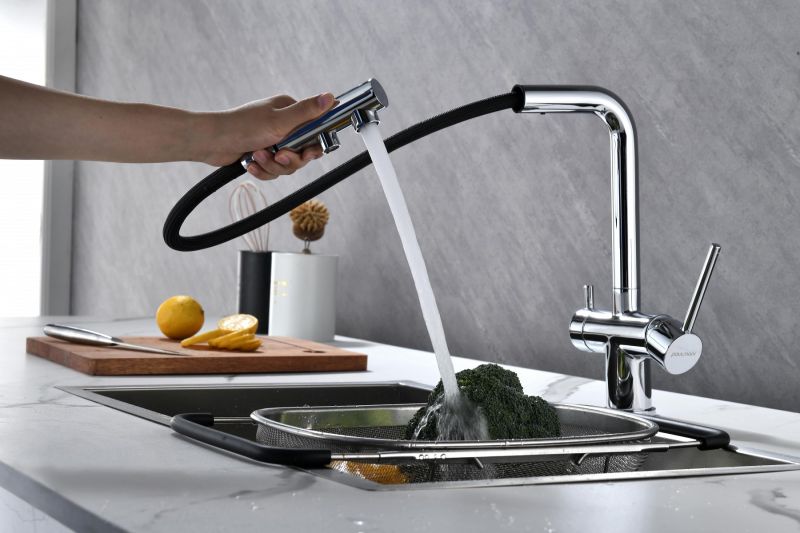 Смеситель для кухни с выдвижным изливом и возможностью подключения фильтра питьевой воды, артикул Se213222-CRИзготовлен из высококачественной латуни, которая отвечает высочайшим европейским стандартам качества, не содержит свинца, не разрушается со временем и безопасна для здоровья.Смеситель для кухонной мойки SERPENTINE изготовлен из высококачественной латуни в классическом дизайне с изливом Г-образной формы. Излив поворотный на 180. Высота излива – 330 мм.