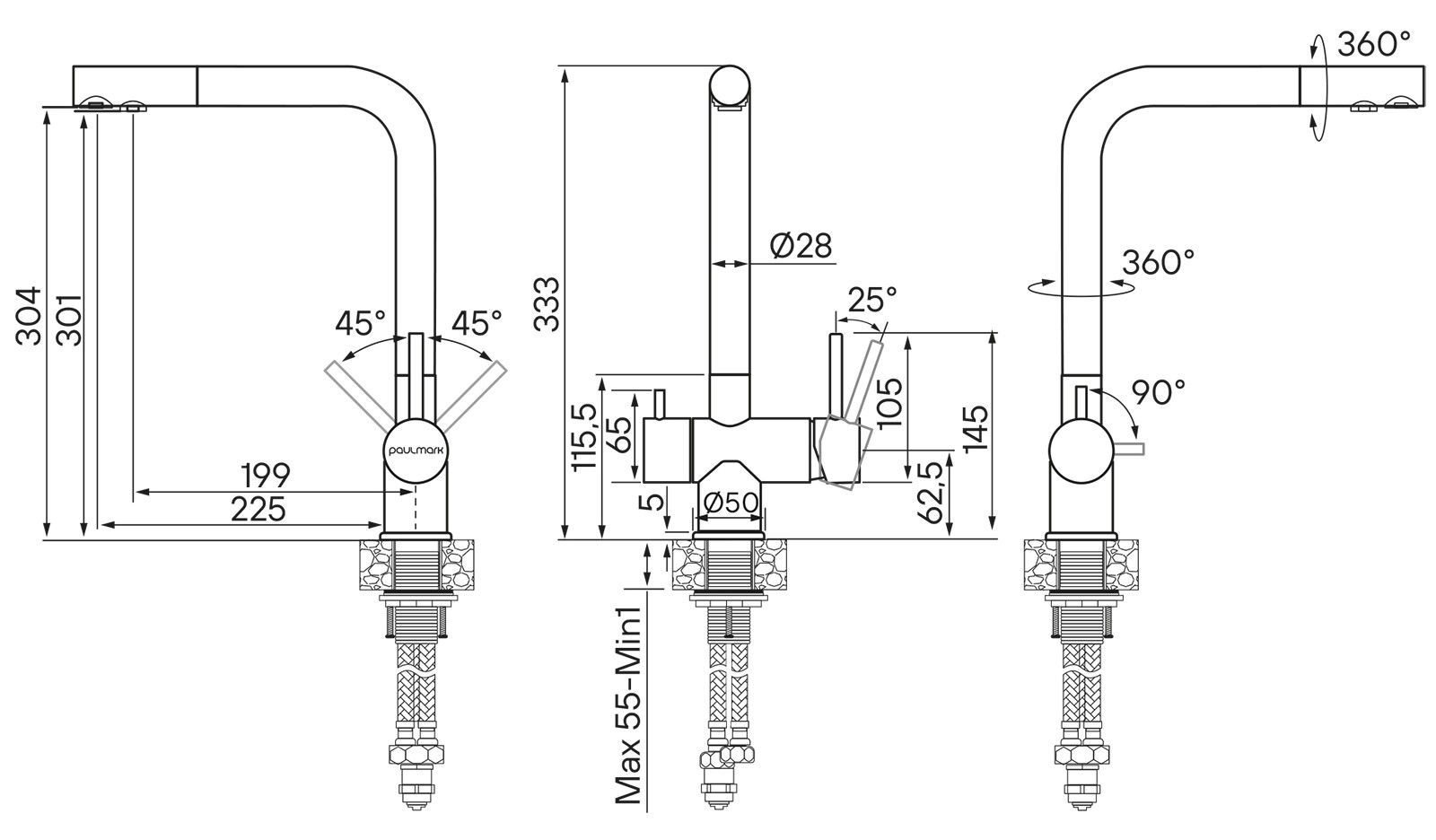 Смеситель для кухни, с возможностью подключения фильтра питьевой воды, артикул Sk213020-BGИзготовлен из нержавеющей стали AISI 304. Нержавеющая сталь AISI 304 легирована никелем, марганцем, медью и хромом, что обеспечивает ей повышенную прочность и устойчивость в коррозионных средах, такая сталь не подвержена деформациям.