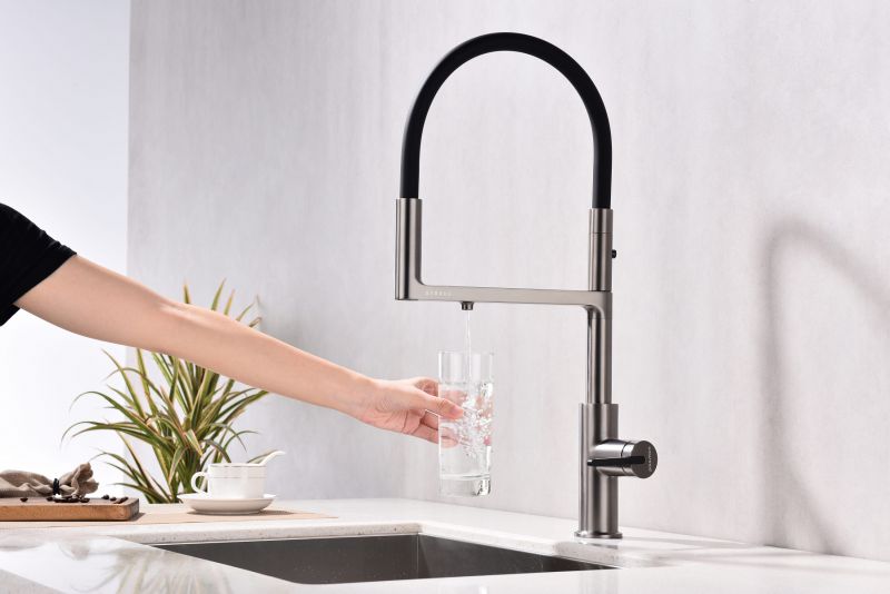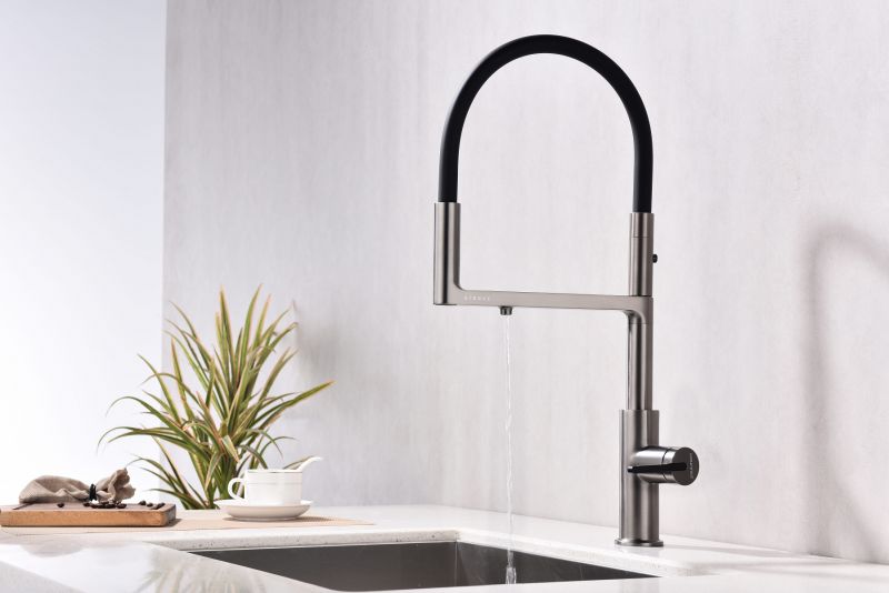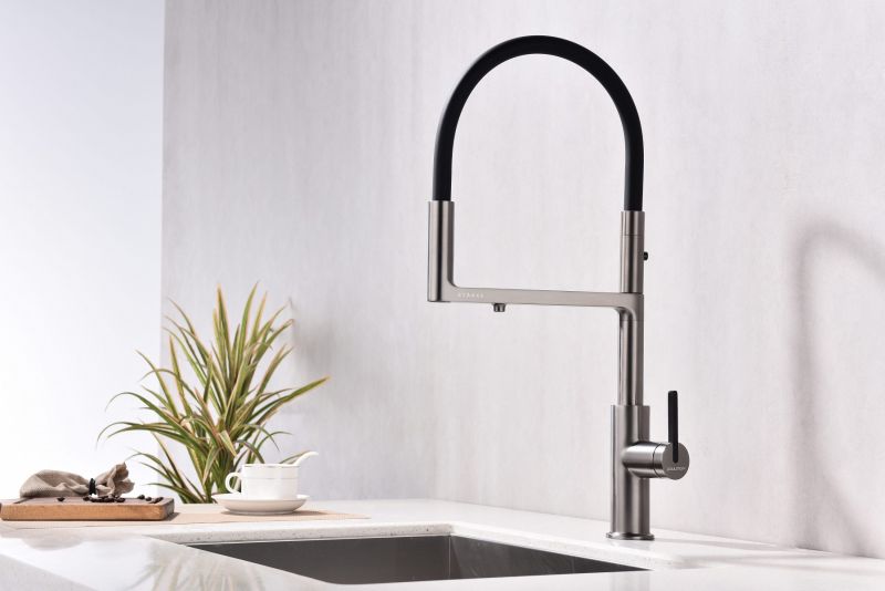 Смеситель для кухни, с гибким изливом, артикул To213402-BИзготовлен из высококачественной латуни, которая отвечает высочайшим европейским стандартам качества, не содержит свинца, не разрушается со временем и безопасна для здоровья.Гибкая подводка 40 см;