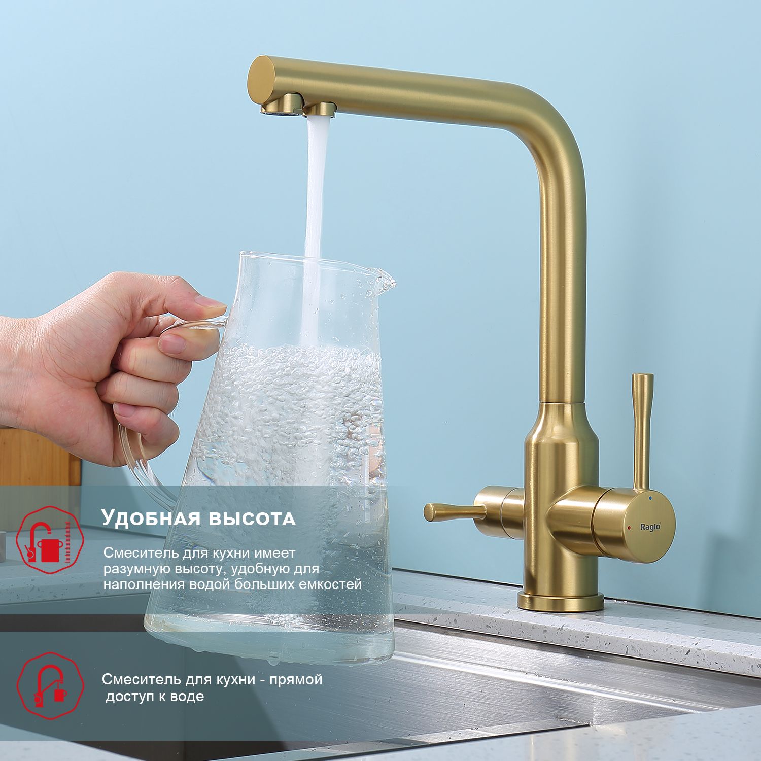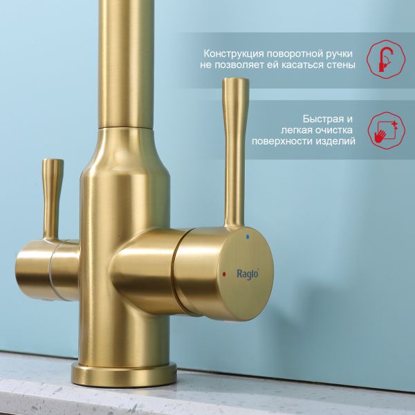 Смеситель для кухни Raglo R81.61.03 с подключением фильтра золотой сатин купить