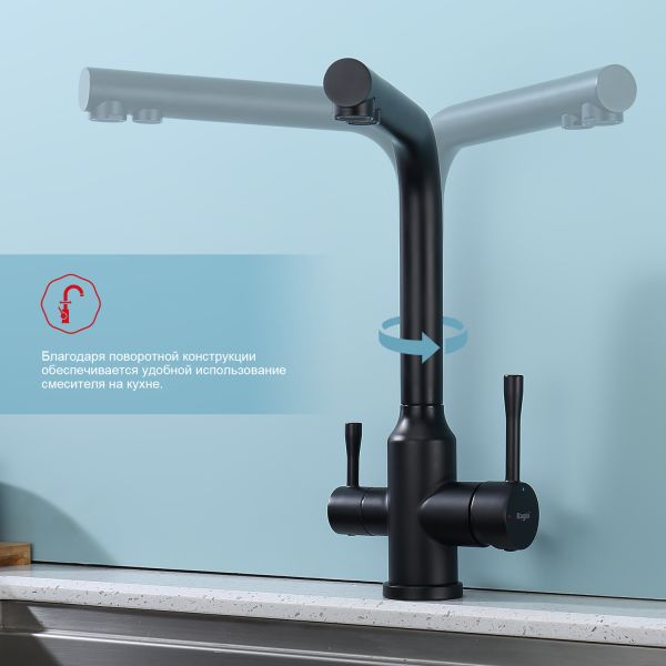 Смеситель для кухни Raglo R81.61.06 с подключением фильтра чёрный купить