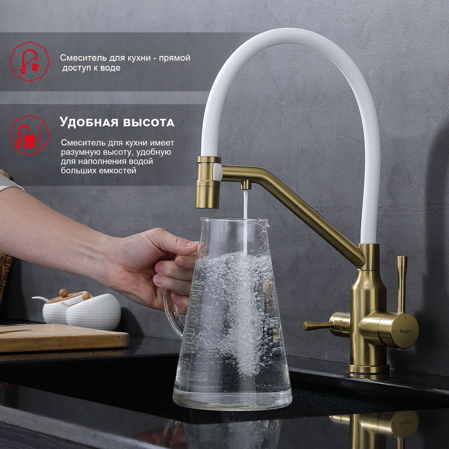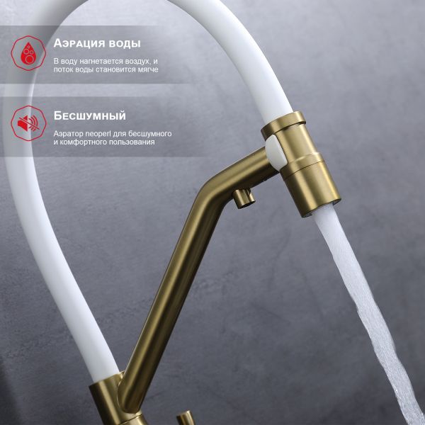 Смеситель для кухни Raglo R81.62.03 с подключением фильтра золотой сатин купить