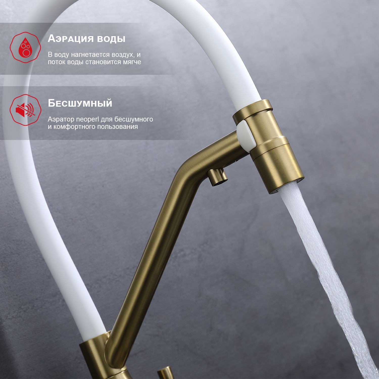 Смеситель для кухни со съемным изливом на магните и подключением фильтра питьевой воды. Гибкий излив белого цвета. Крепление на усиленной гайке. Подводка длиной 55 см имеет латунные гайки.Гарантия на смеситель 7 лет и 2 года на покрытие!