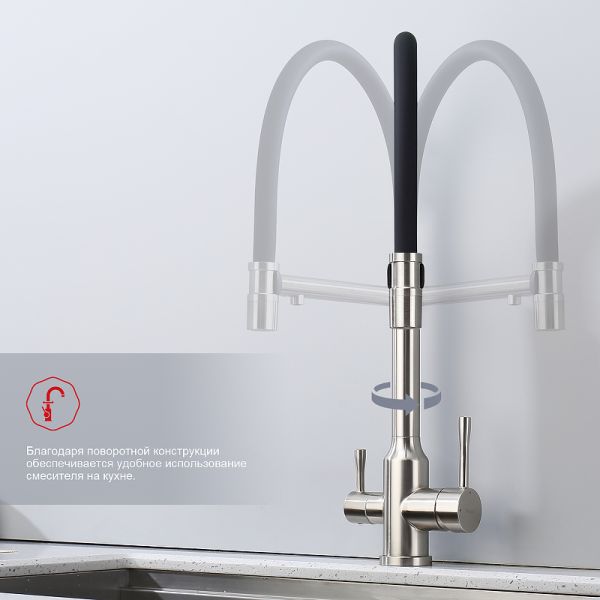 Смеситель для кухни Raglo R81.63.05 с подключением фильтра сатин