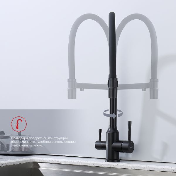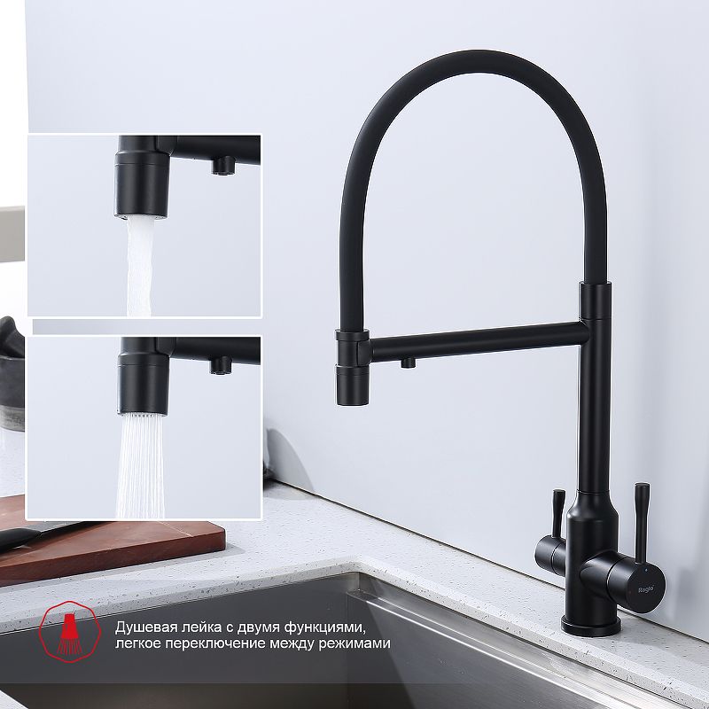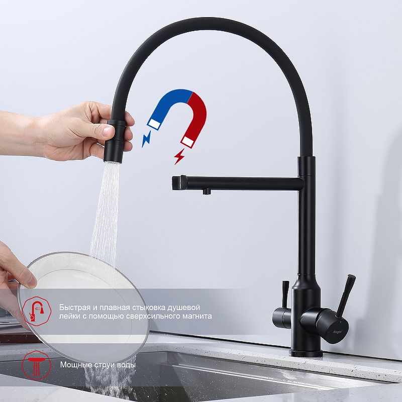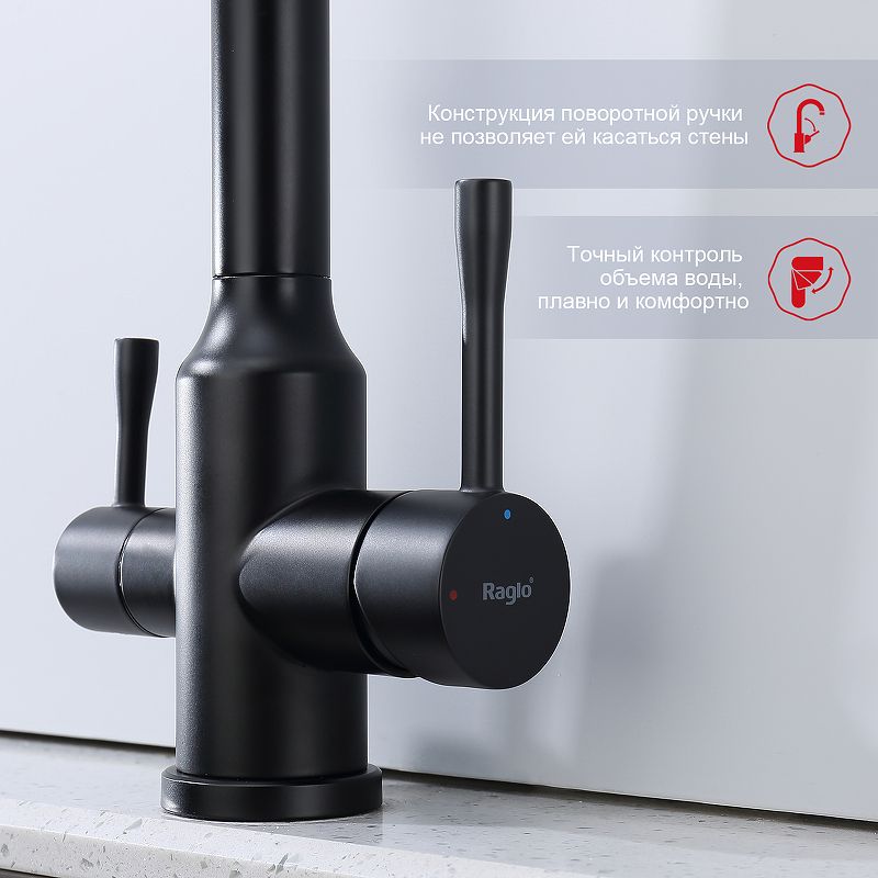 Смеситель для кухни Raglo R81.63.06 с подключением фильтра чёрный купить