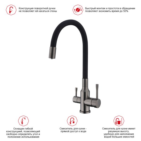 Смеситель для кухни Raglo R81.64.09 с подключением фильтра графит купить