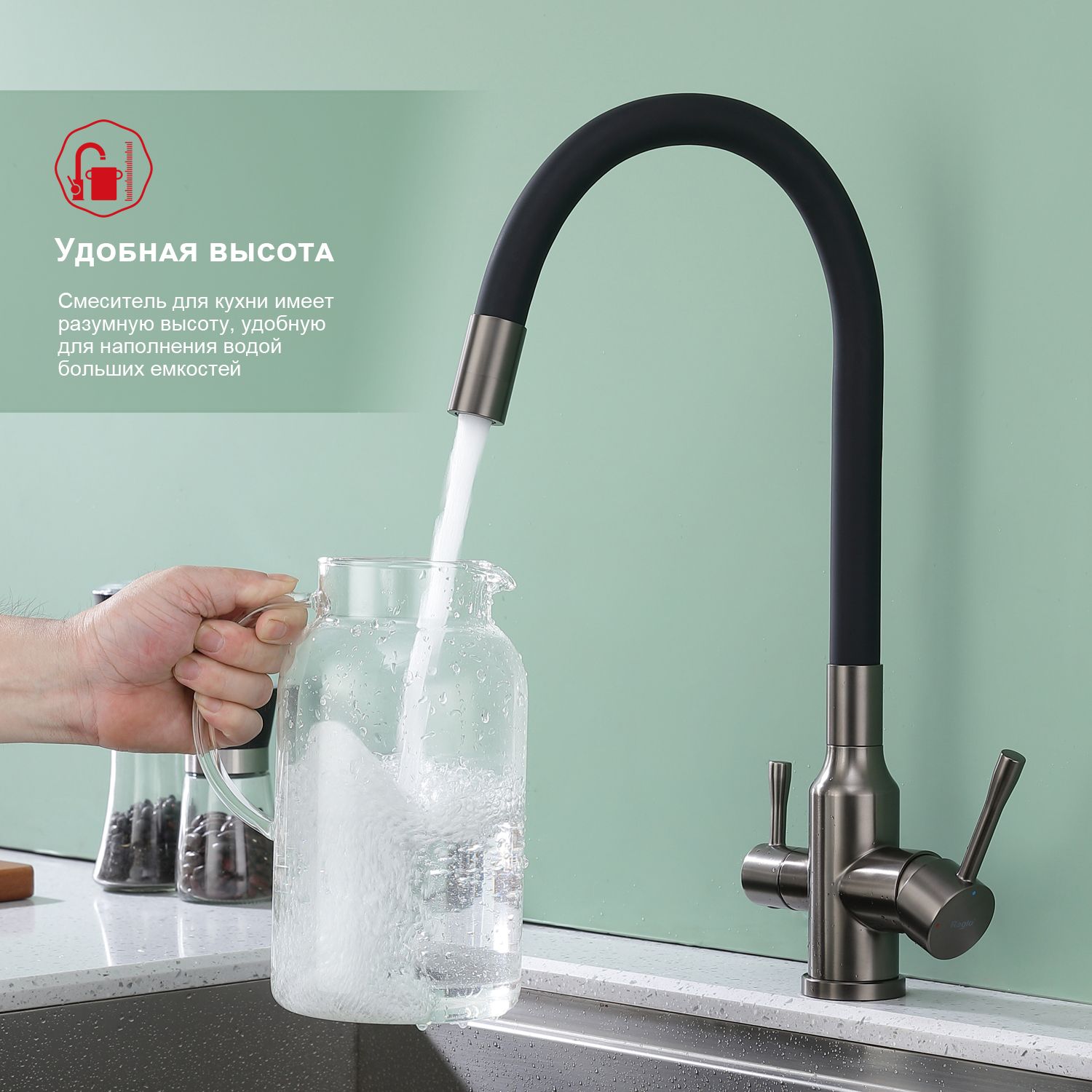 Смеситель для кухни Raglo R81.64.09 с подключением фильтра графит