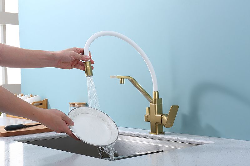 Смеситель для кухни Raglo R85.62.03 с подключением фильтра золотой сатин купить