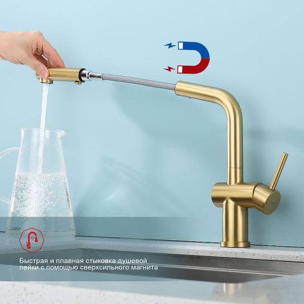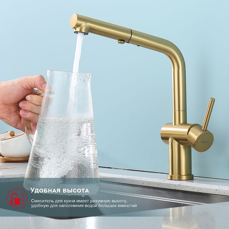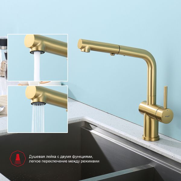 Смеситель для кухни Raglo R86.49.03 с выдвижным изливом золотой сатин