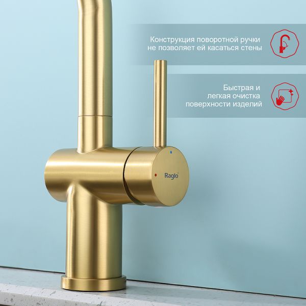 Смеситель для кухни Raglo R86.49.03 с выдвижным изливом золотой сатин купить