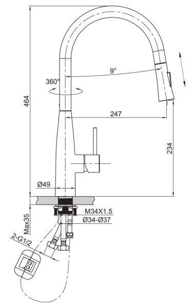 шланг 150см, распылительная головка, покрытие матовый черный 3 слоя( специальная технология)