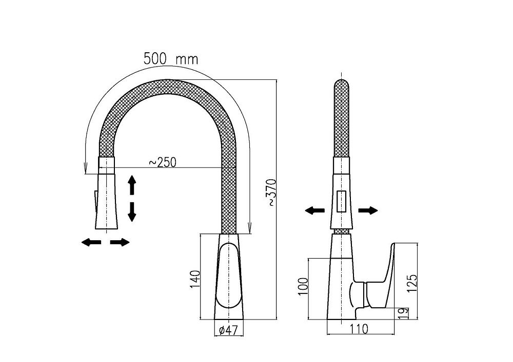 • Гибкий излив: