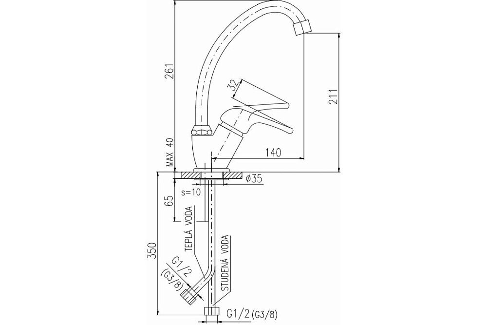 • Высота смесителя: