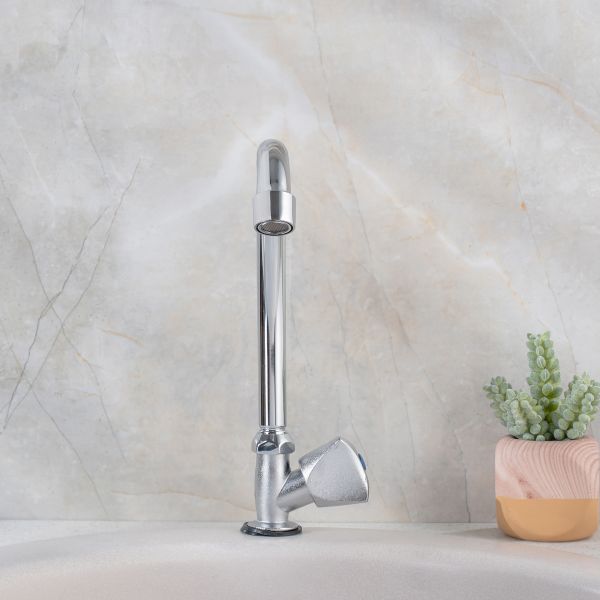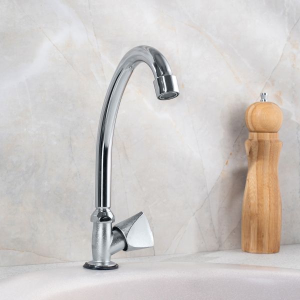 Смеситель для кухни с высоким изливом для одной воды из данной серии обладает не отполированным хромированным корпусом и полированным длинным изливом, удобен и практичен в использовании.