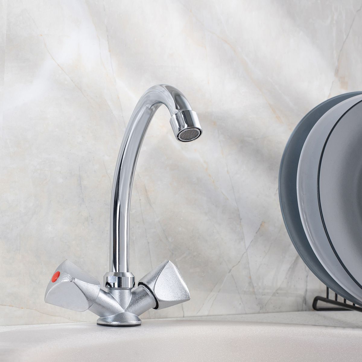 Двуручковый смеситель для кухни из данной серии обладает не отполированным хромированным корпусом и полированным изливом, удобен и практичен в использовании.