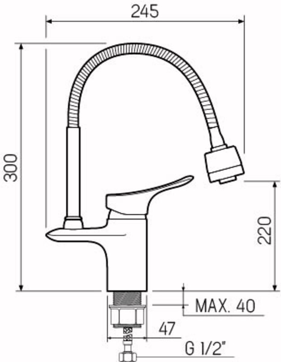 • Высота смесителя: