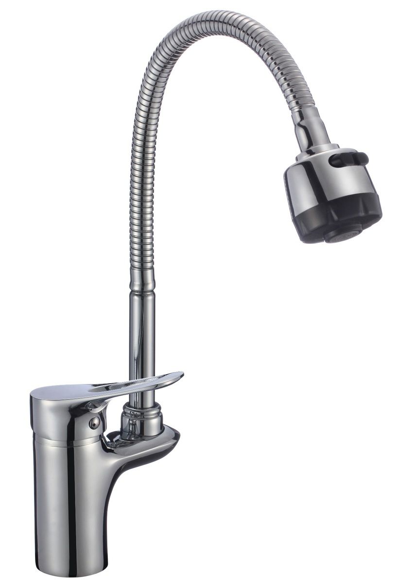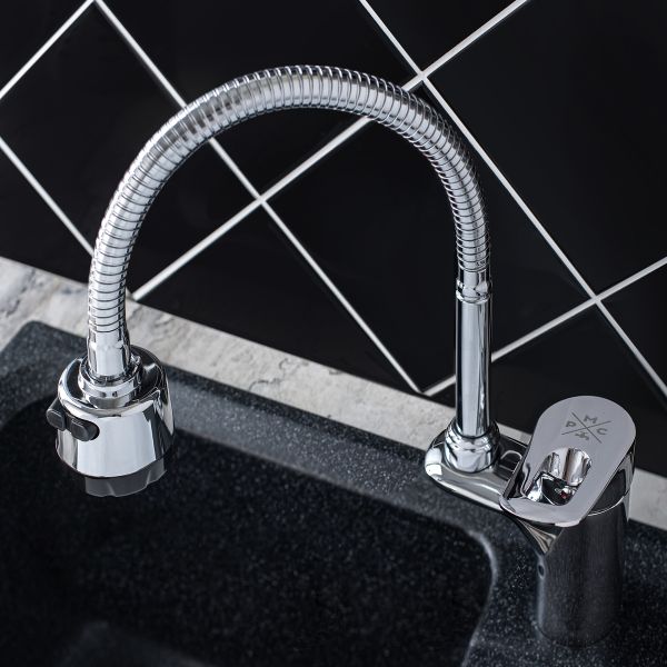 Функциональный однорычажный смеситель для кухни с гибким изливом и насадкой-распылитель, подойдет для мойки любого размера и стильно дополнит интерьер кухни.
