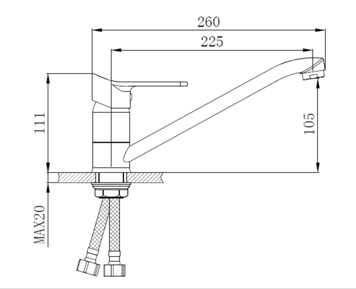 Классическая модель однорычажного смесителя украсит любую кухню. Удлиненный поворотный излив предназначен для оборудования габаритной раковины. Рычаг удобен для захвата одной рукой и поворачивается плавно, что позволяет максимально точно настроить температуру и напор струи.