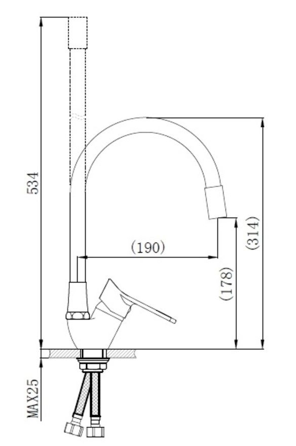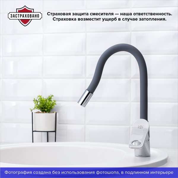 При производстве смесителей ТМ РМС используются только высококачественные материалы. Все модели проходят процесс гальванизации, что придает им большую износостойкость и улучшает антикоррозийные свойства. Установка смесителя крайне проста. Смесители РМС это сертифицированный продукт с 5-летней гарантией. Гибкая подводка идет в комплекте.Смеситель для кухни с высоким