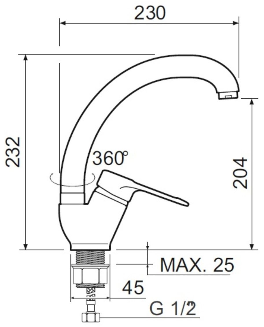 При производстве смесителей ТМ РМС используются только высококачественные материалы. Все модели проходят процесс гальванизации, что придает им большую износостойкость и улучшает антикоррозийные свойства. Установка смесителя крайне проста. Смесители РМС это сертифицированный продукт с 5-летней гарантией. Гибкая подводка идет в комплекте.Смеситель для кухни с высоким поворотным изливом.Картридж: керамический 35мм. Аэратор: пластиковый.Покрытие: хром.Крепление: гайка.В комплекте: гибкая подводка