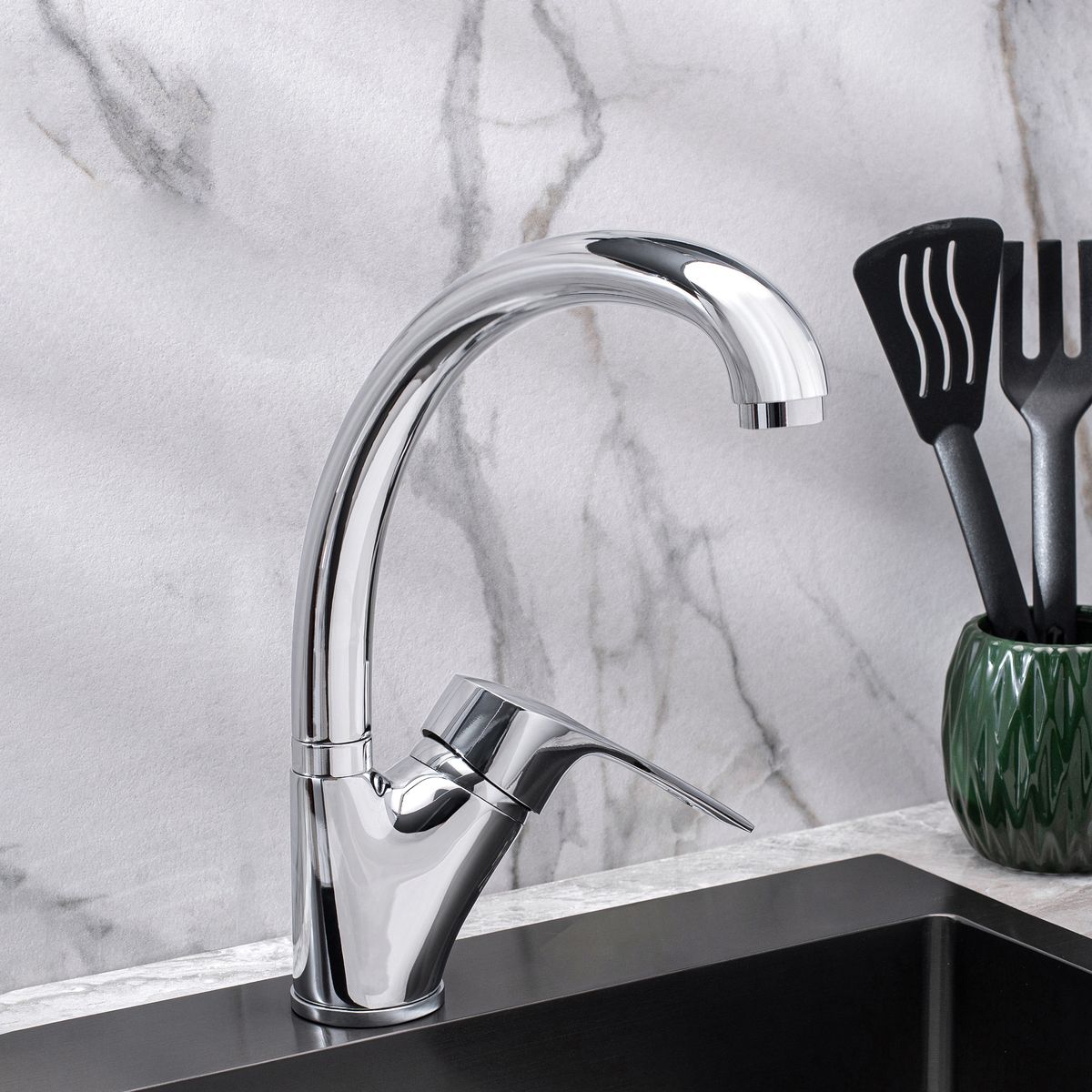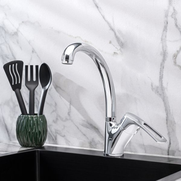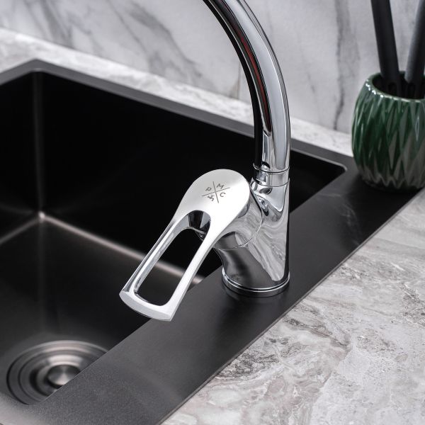 При производстве смесителей ТМ РМС используются только высококачественные материалы. Все модели проходят процесс гальванизации, что придает им большую износостойкость и улучшает антикоррозийные свойства. Установка смесителя крайне проста. Смесители РМС это сертифицированный продукт с 5-летней гарантией. Гибкая подводка идет в комплекте.Смеситель для кухни с высоким