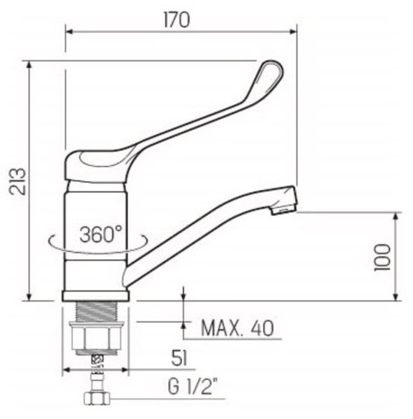 • Высота смесителя: