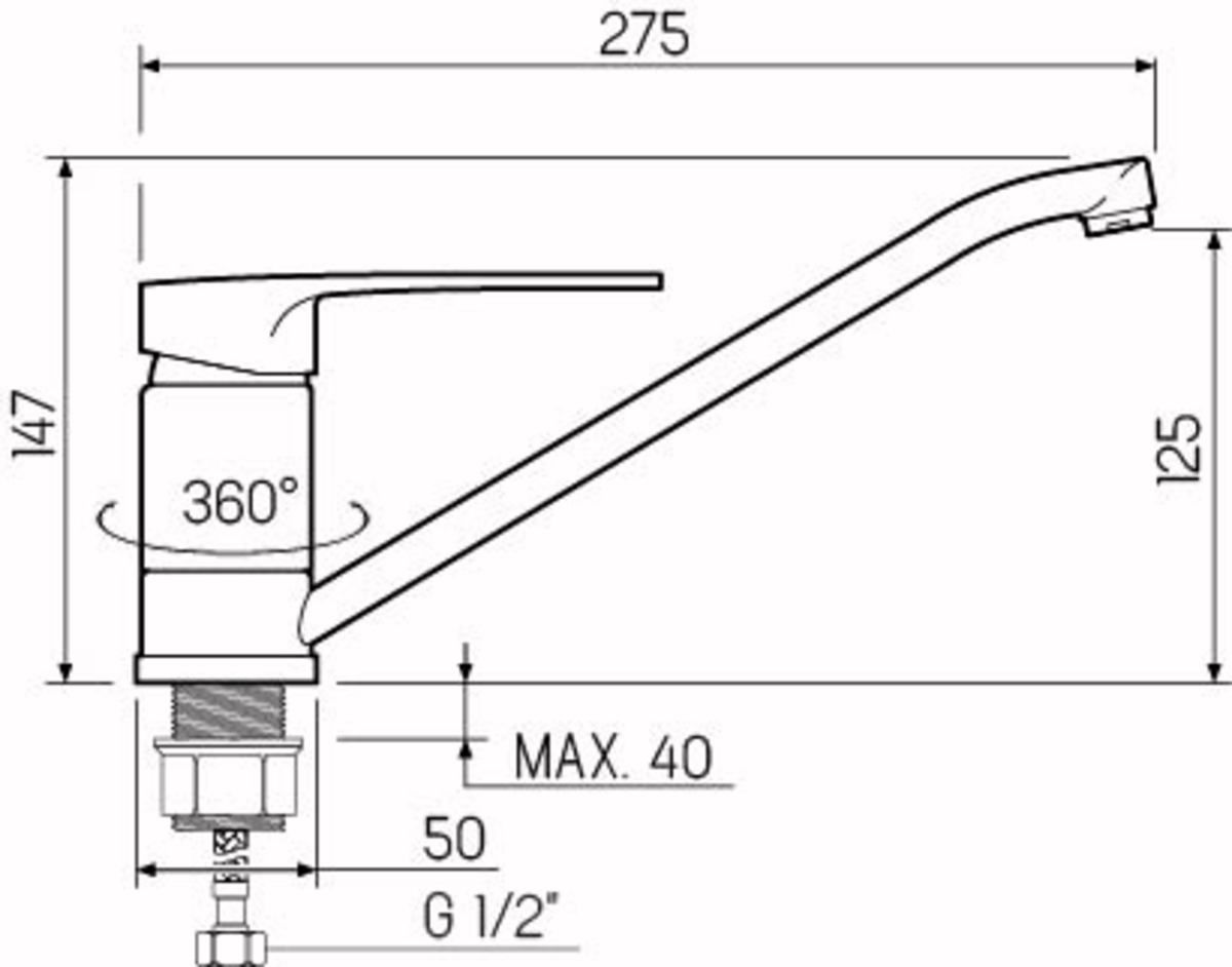 Смеситель для кухни с длинным поворотным изливом