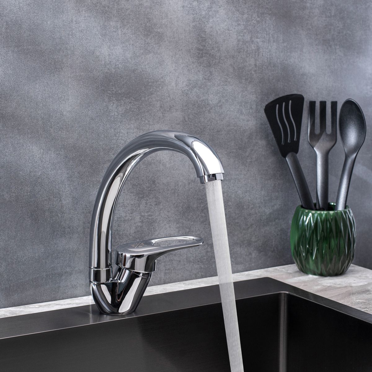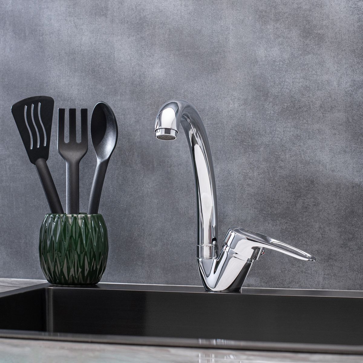 Классический однорычажный смеситель для кухонной мойки с высоким поворотным изливом станет надежным и эффективным решением для вашего интерьера.