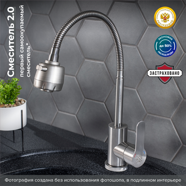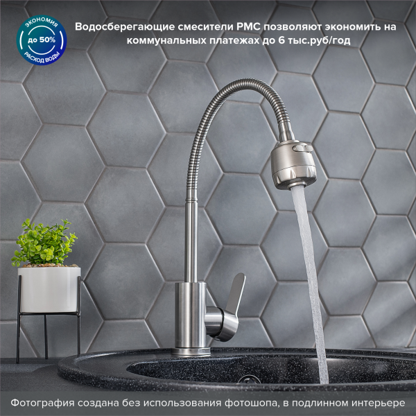 Смеситель для кухни РМС SUS124-016F нержавеющая сталь