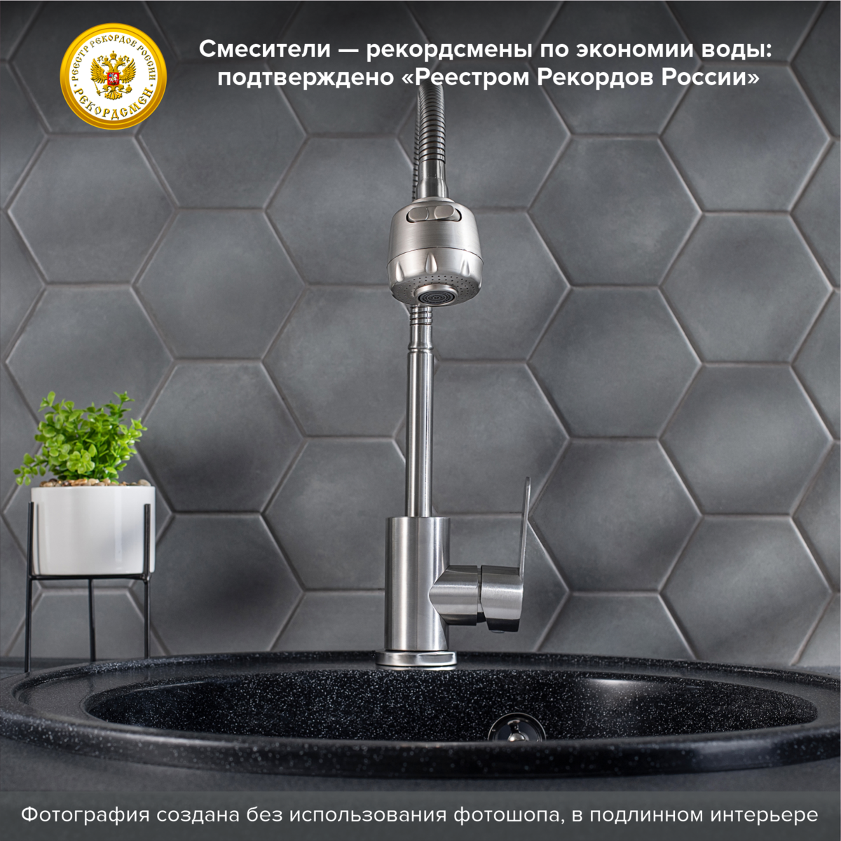 Функциональный одноручковый смеситель для кухни с гибким изливом и насадкой распылителем станет не заменимым помощником на кухне.