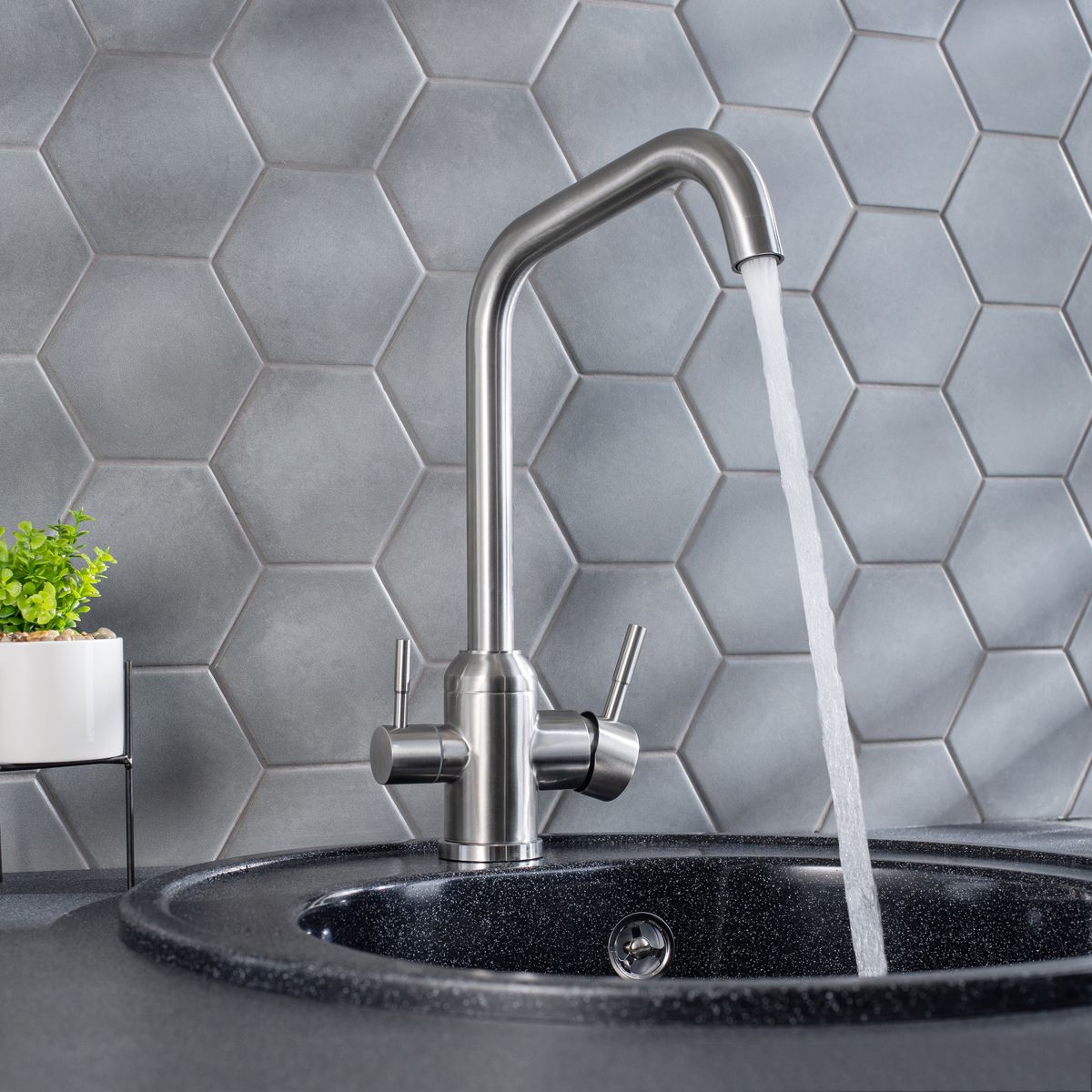 с высоким поворотным изливом это не только стилистическое, но и функциональное решение для оснащения кухни.