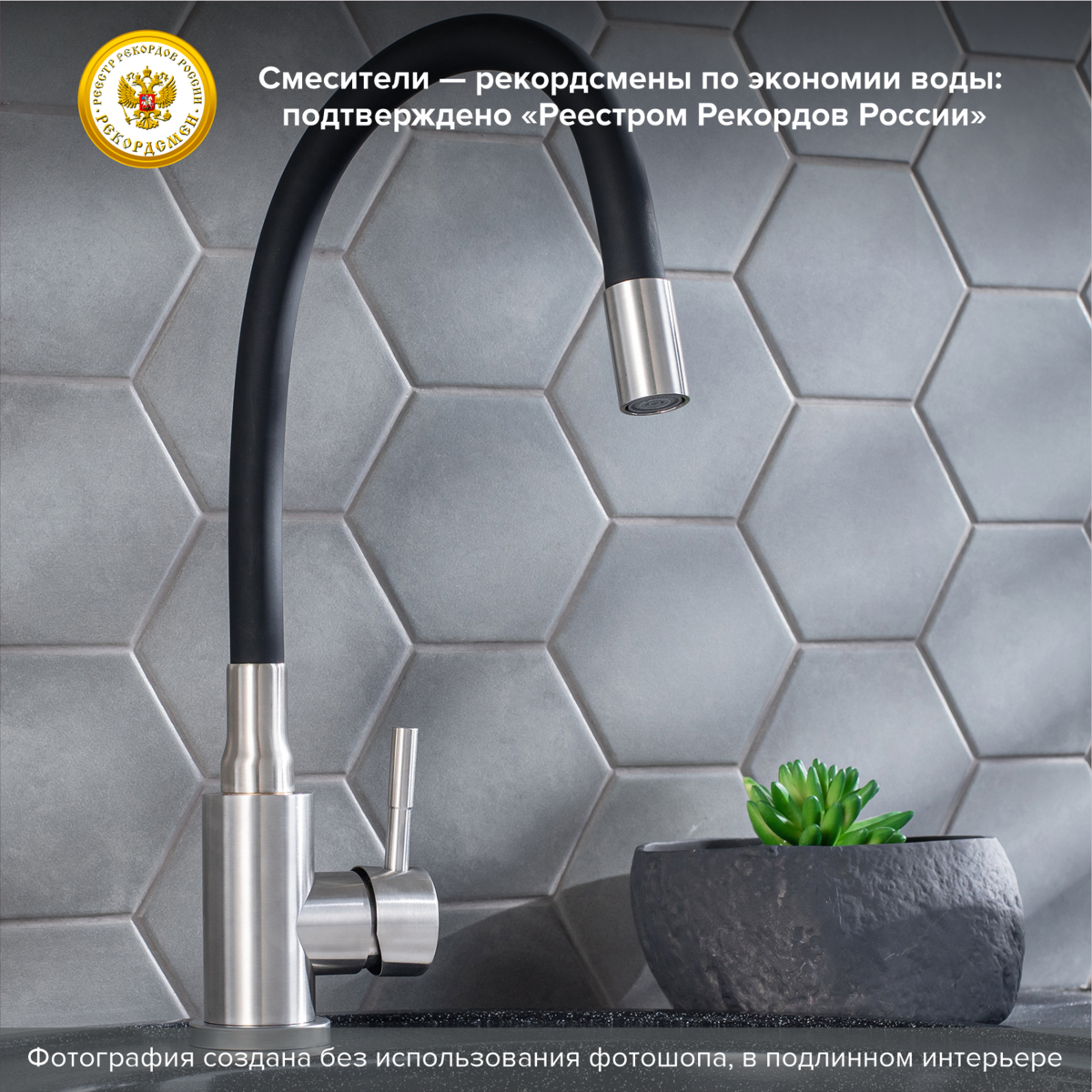 Смеситель для кухни с высоким гибким изливом