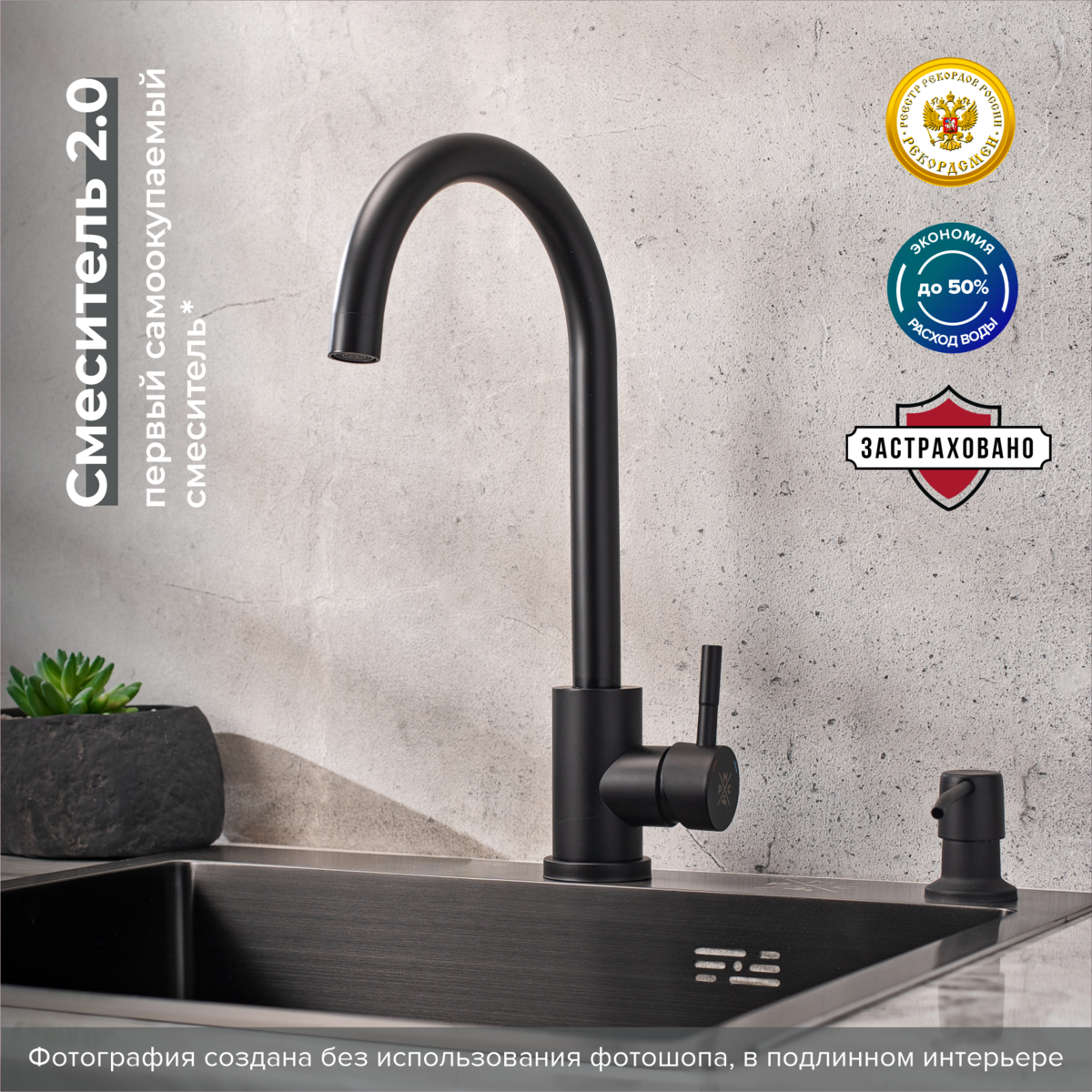 Смеситель для кухни РМС SUS124BLK-017F чёрный купить