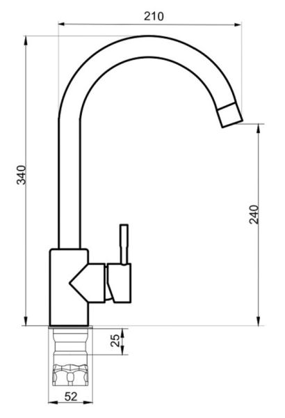 Стильный одноручковый смеситель для кухни из нержавеющей стали с высоким изливом прекрасно подойдет для мойки любого размера.