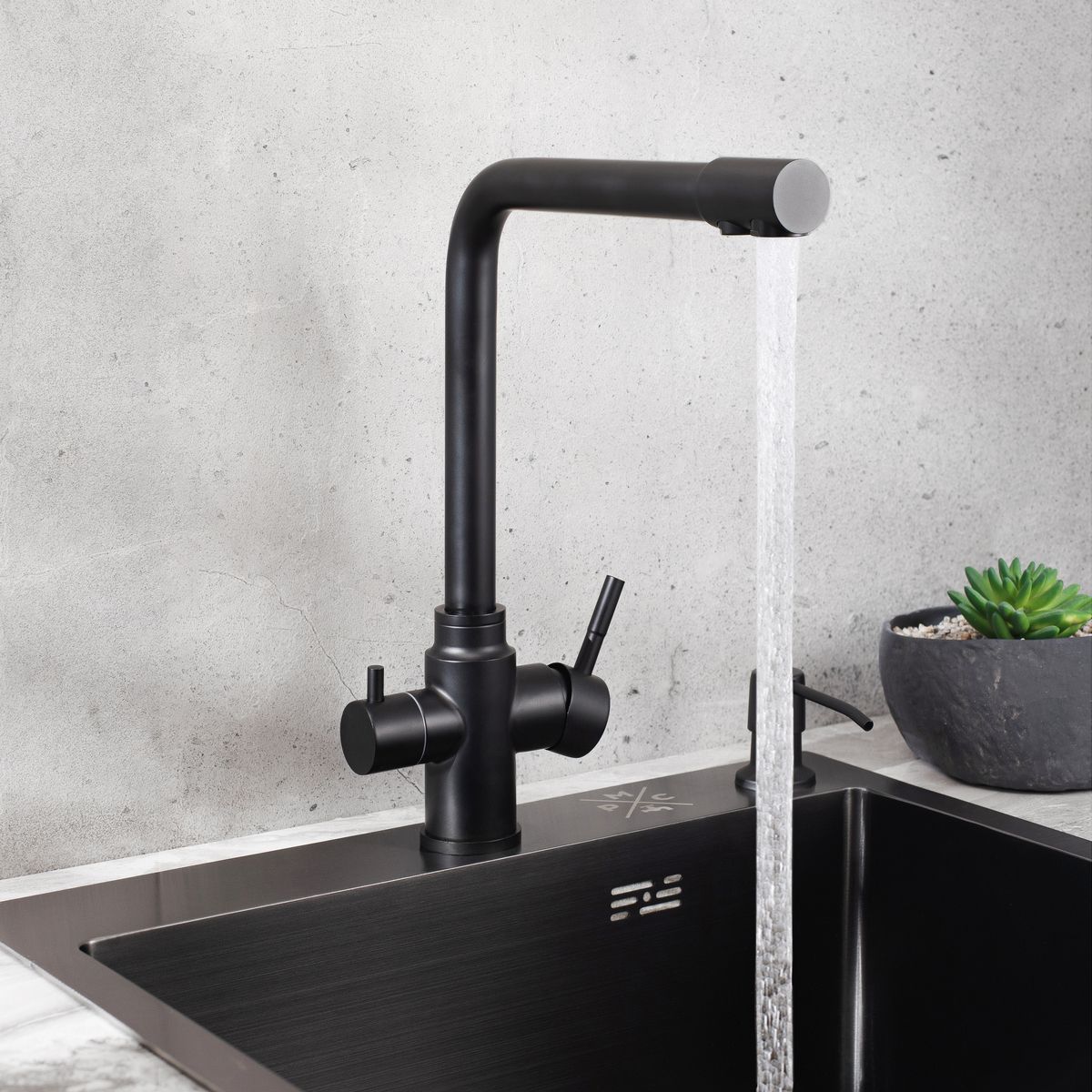 Смеситель для кухни РМС SUS125BL-017F-015 с подключением фильтра чёрный купить