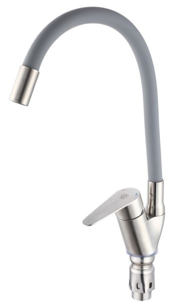 Одноручковый смеситель для кухни из нержавеющей стали с гибким изливом прост и удобен в использовании.