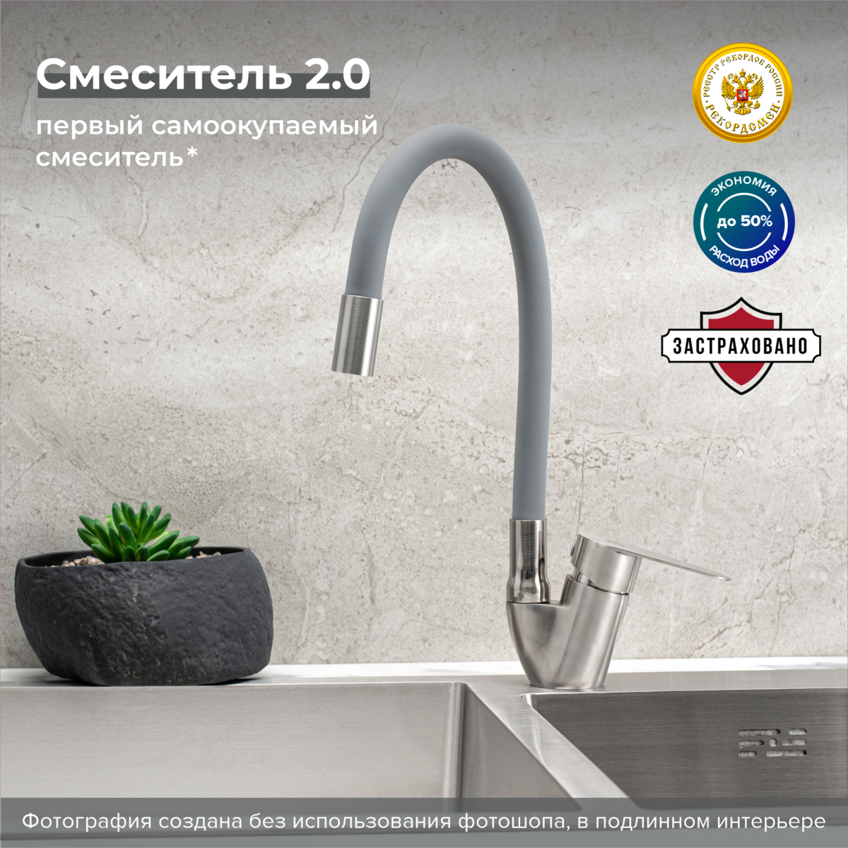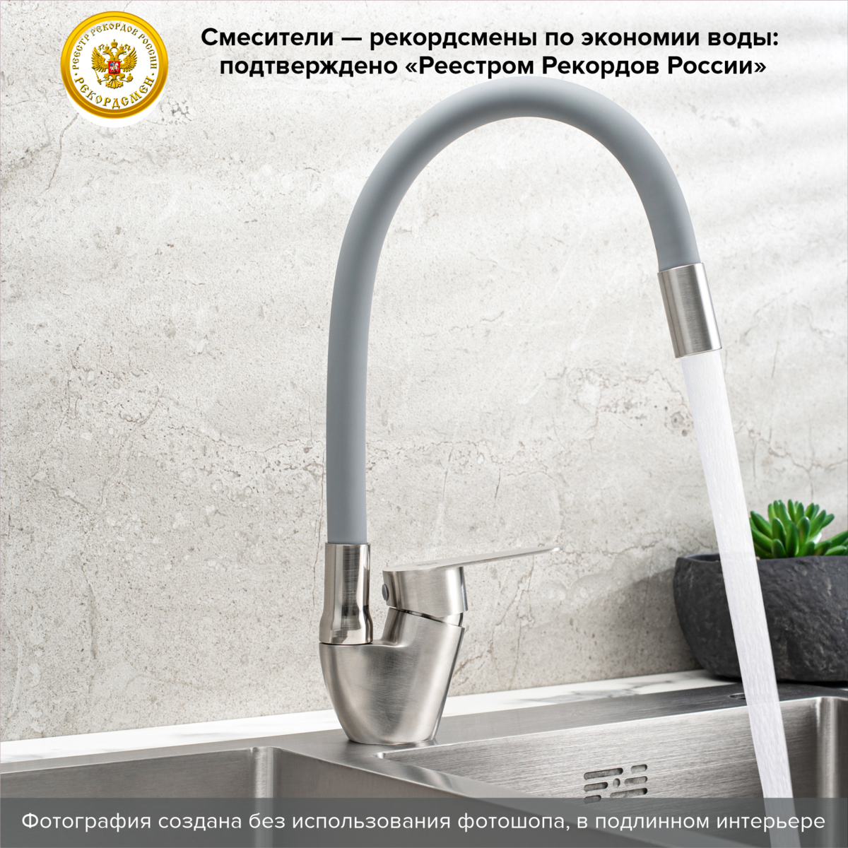 Смеситель для кухни РМС SUS126GY-016F нержавеющая сталь купить