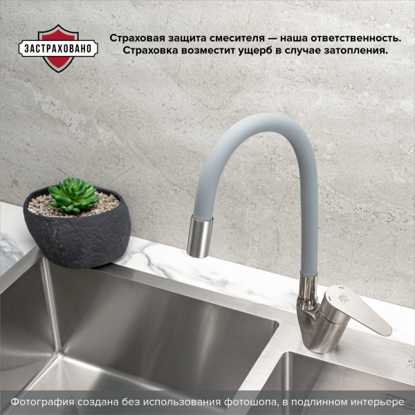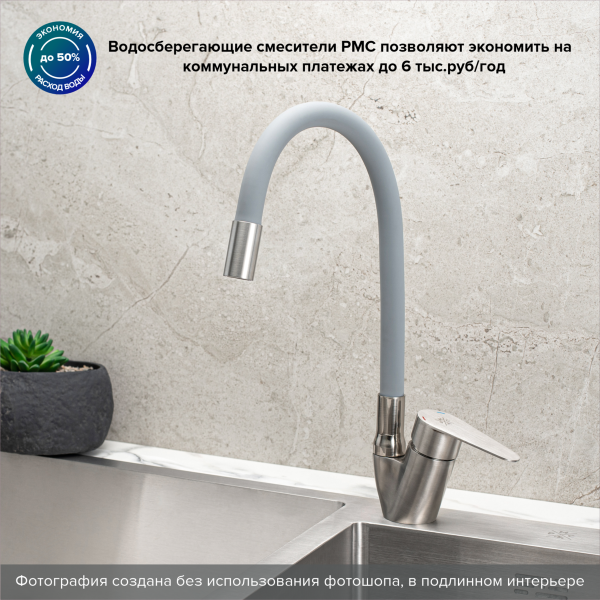 Смеситель для кухни РМС SUS126GY-016F нержавеющая сталь