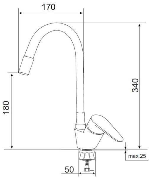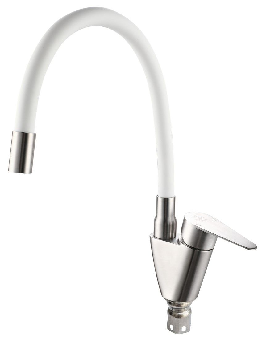 Одноручковый смеситель для кухни из нержавеющей стали с гибким изливом прост и удобен в использовании.