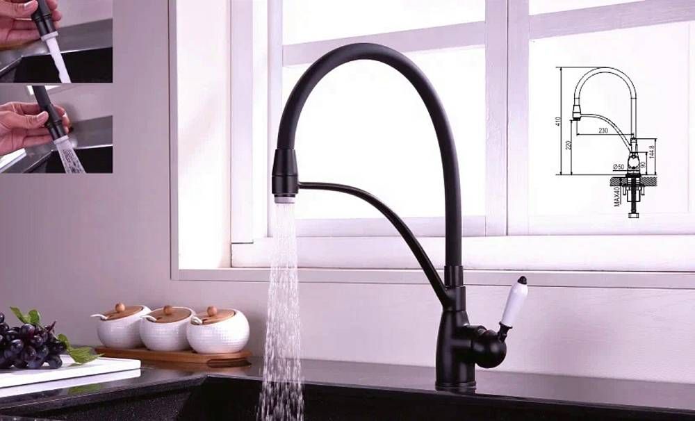Смеситель для кухни Rose R153H чёрный матовый купить