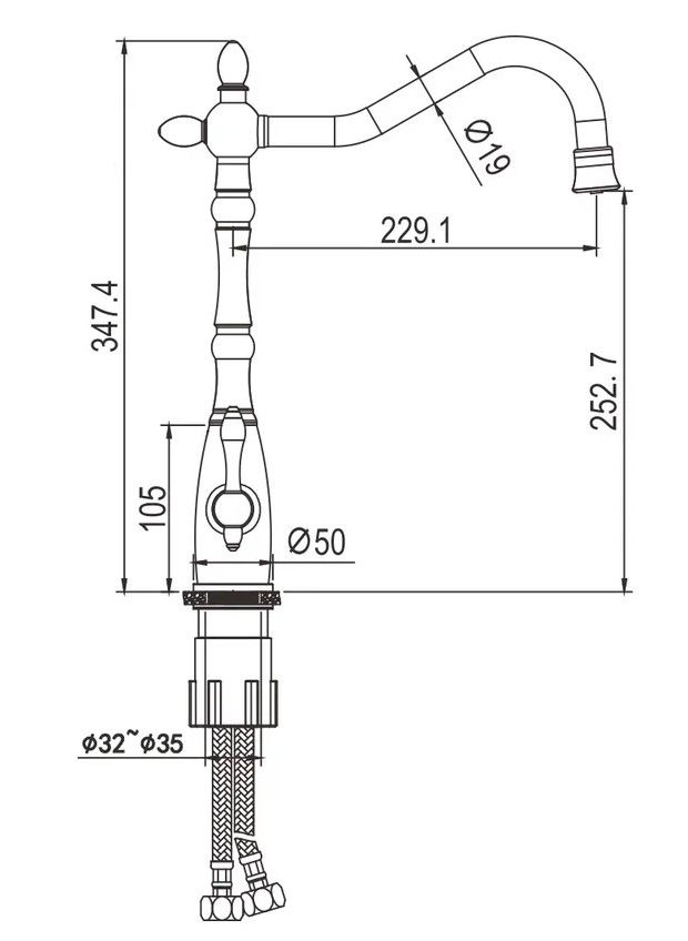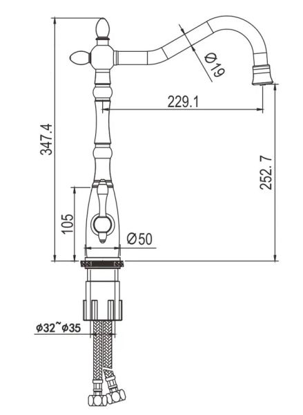 • Гибкий излив: