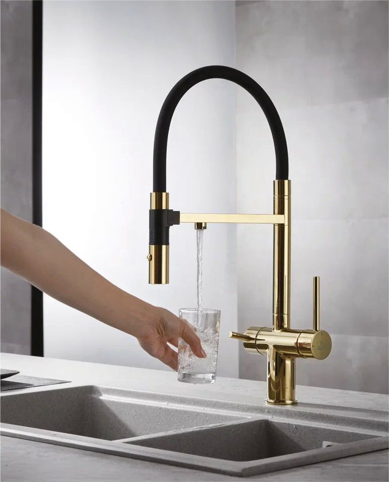 Смеситель для кухни Rose R958 R958E, золото.
