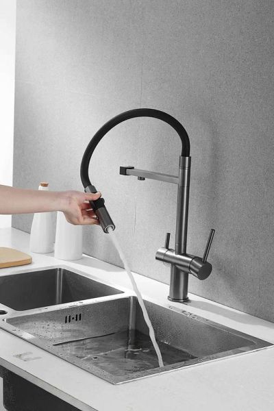 Смеситель для кухни Rose R958 R958T, пепельный.