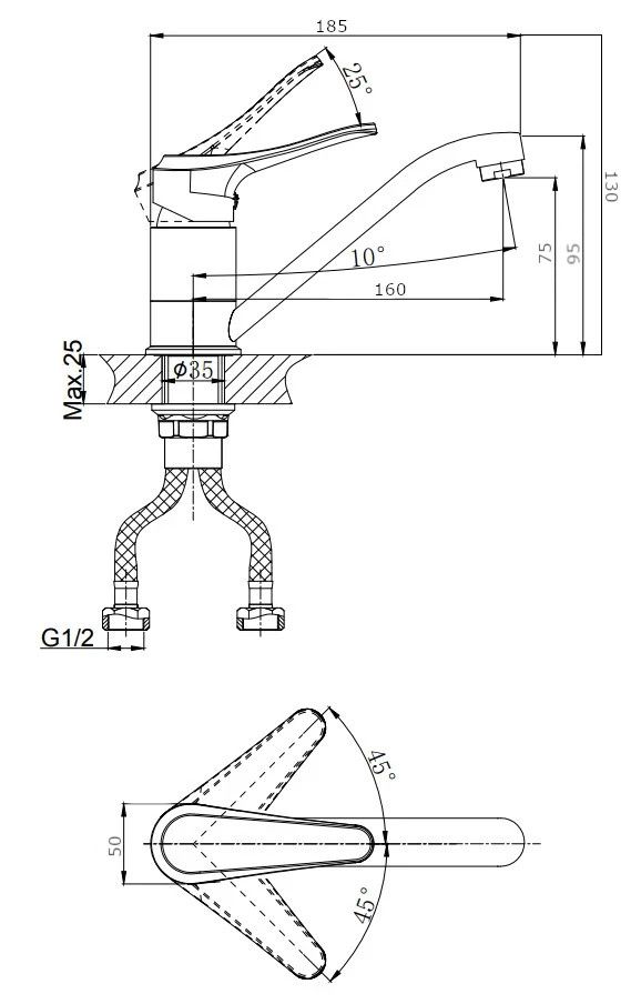 • Высота смесителя: